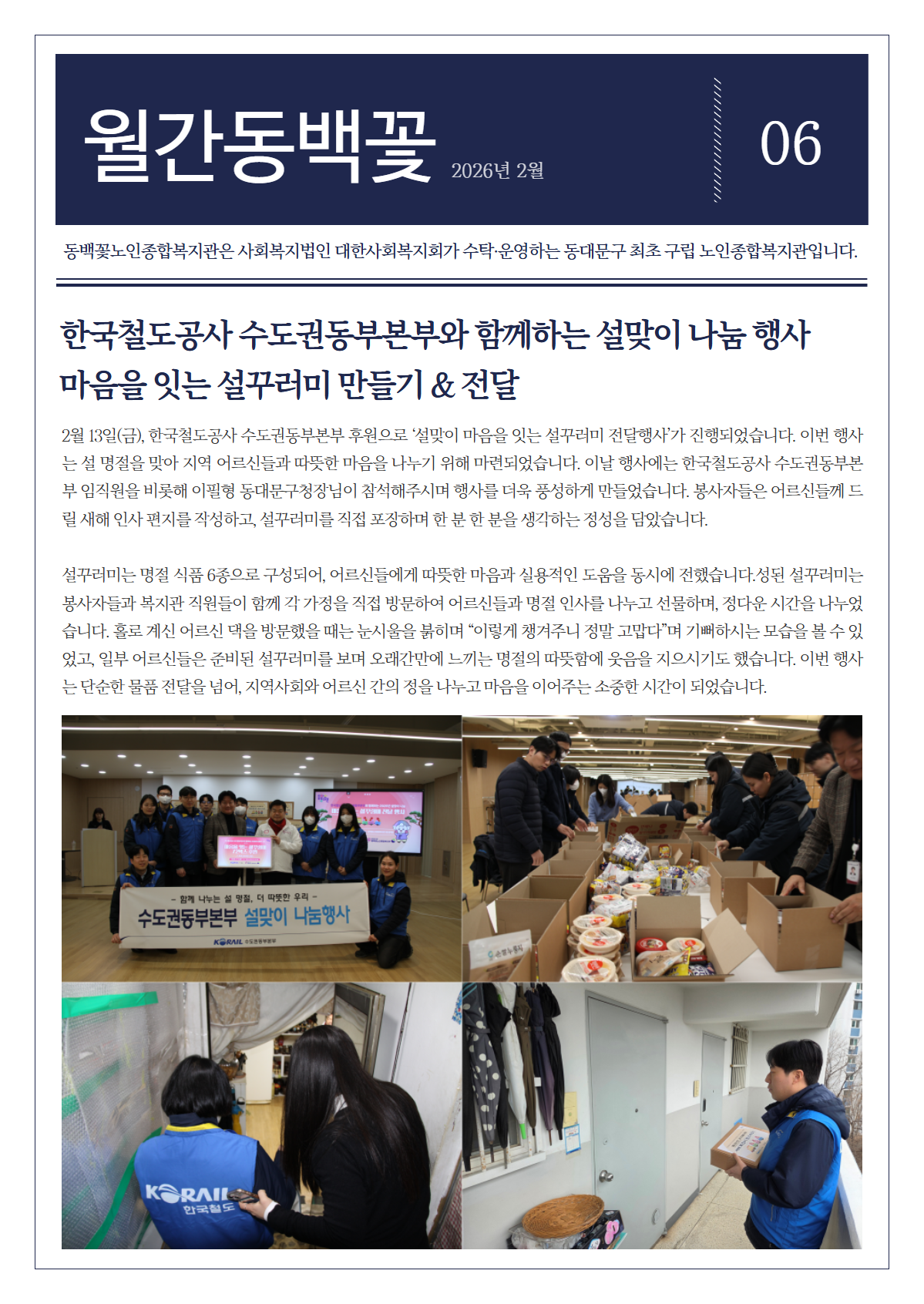 한국철도공사 수도권동부본부와 함께하는 설맞이 ‘마음을 잇는 설꾸러미’ 나눔 행사