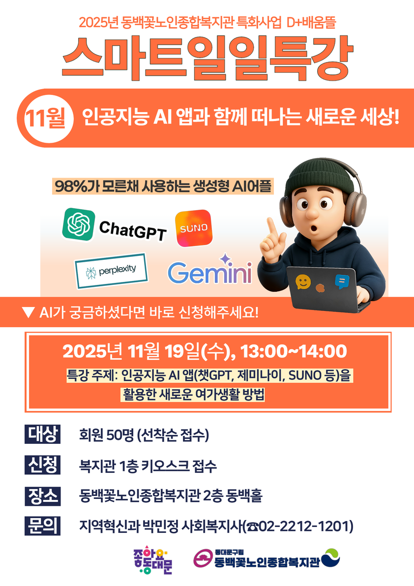 [모집] 11월 스마트 일일특강(생성형AI 어플기반 여가활동) 참여자 모집