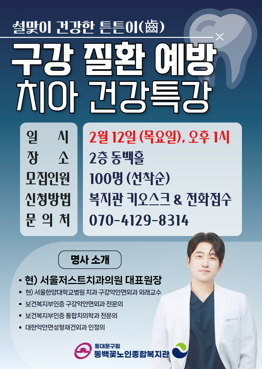 [모집] 2026년 '설맞이 건강한 튼튼이(齒)' 구강질환예방 치아건강특강 참여자 모집