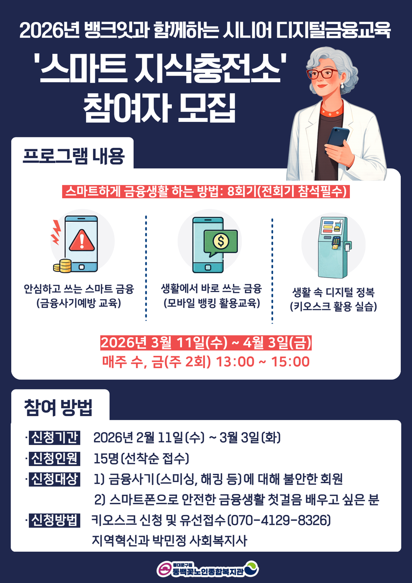 [모집] 2026년 뱅크잇과 함께하는 시니어 디지털금융교육 '스마트 지식충전소' 참여자 모집