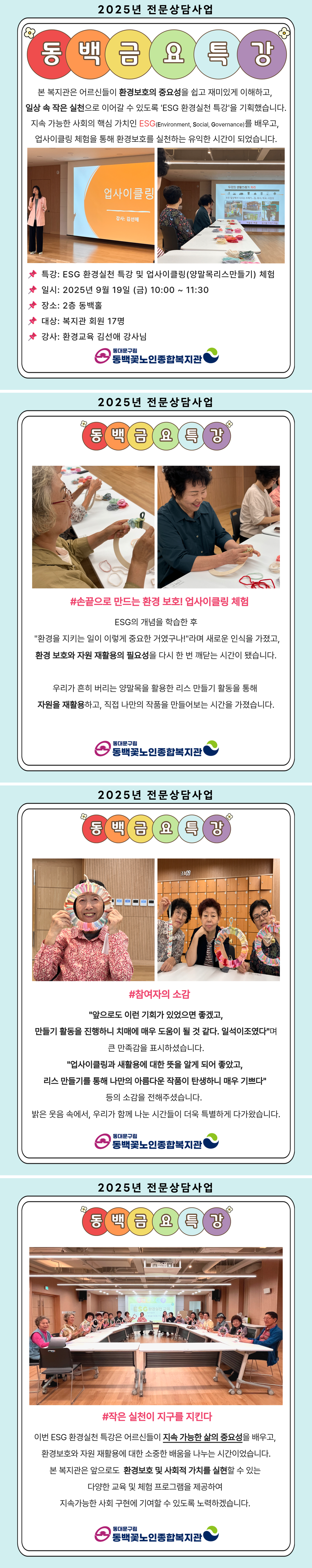 동백금요특강-ESG 환경실천 특강 및 업사이클링 체험 진행