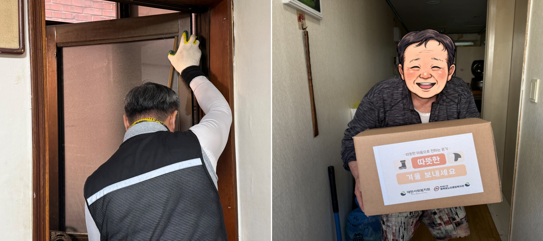 지원을 받으신 한 어르신은 "날씨가 추워질수록 창문 깨진 부분이 너무 걱정됐는데 수리해줘서 고맙다"며 "방한 신발, 모자, 내복 등 방한용품을 지원해주신 덕분에 따뜻한 겨울이 될 것 같다"고 소감을 전해주셨습니다.