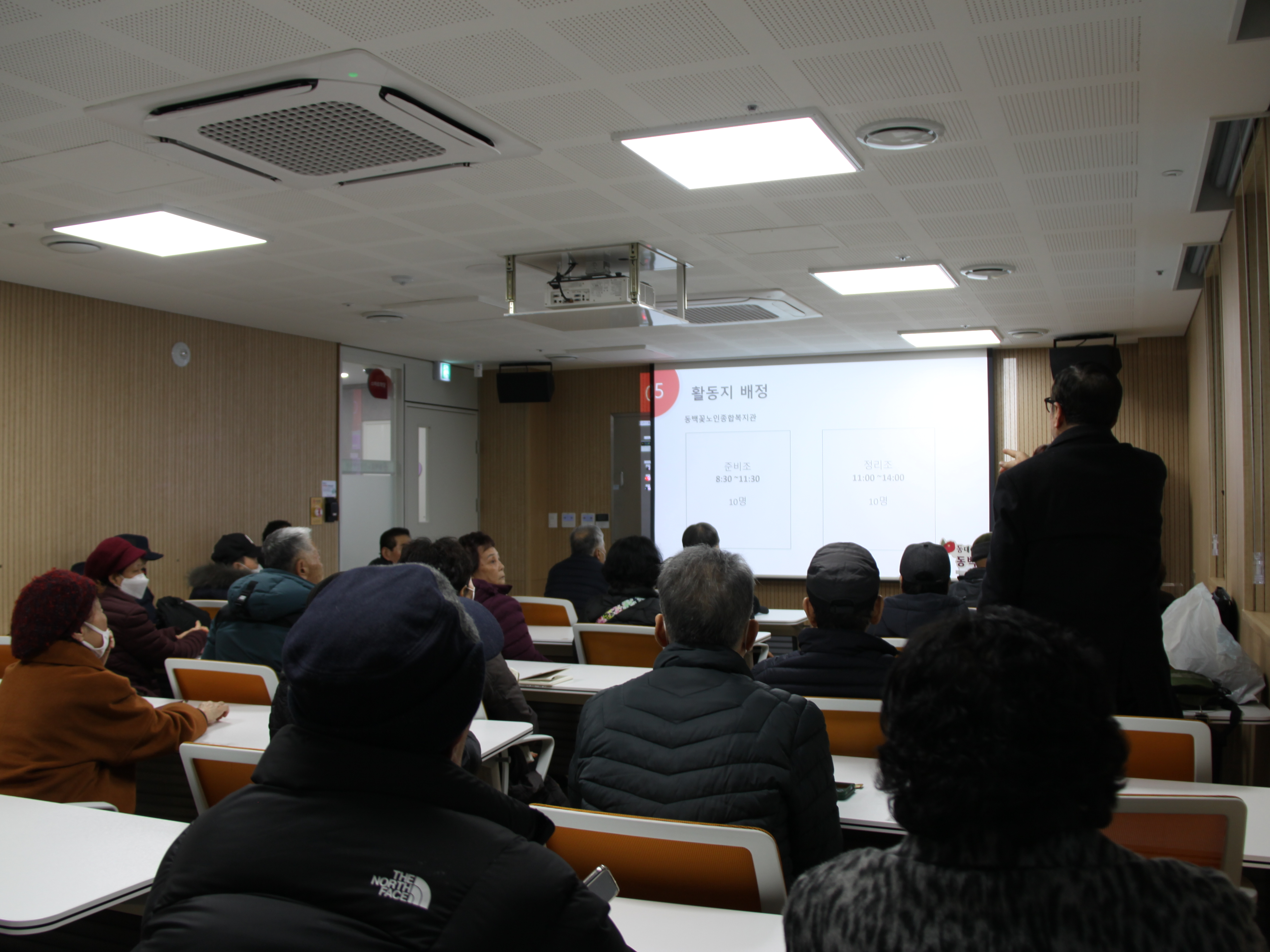 2월 4일(목)부터 6일(금)까지 동백꽃노인종합복지관에서는 노인일자리 참여 어르신들을 대상으로 활동 이해를 돕고 안전한 근무 환경을 조성하기 위한 사전 교육을 진행하였습니다.
