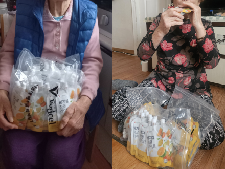 과채주스를 지원받은 한 어르신은 " 폐암 항암 중인데 입맛이 없어 대충 끼니를 때웠는데 몸에 좋은 과채주스를 주시니 너무 감사합니다."라는 소감을 전해주셨습니다.