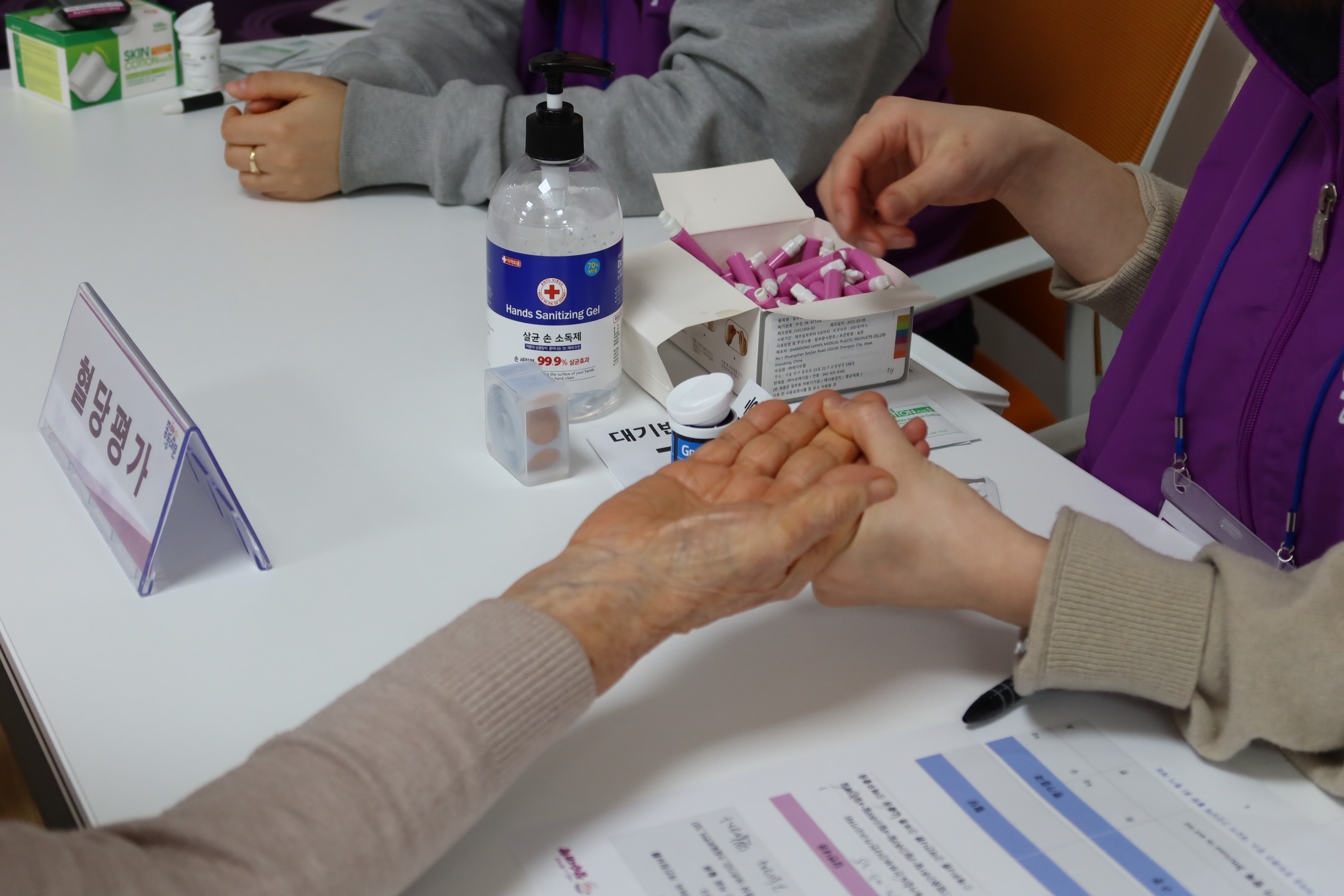 근력 증진을 희망하는 참여자를 모집하여 스마트 건강측정을 진행하였고, 동대문구보건소 건강장수팀의 협조로 어르신들의 혈당을 확인할 수 있었습니다. 프로그램은 총 8회기로 진행되며 운동교육 6회기, 건강교육 2회기로 프로그램 종료 후 사후 건강측정을 진행할 예정입니다. 건강교육은 약물 안전 사용 및 복용(7회기), 건강을 위한 한방차 만들기(8회기)로 계획되어 있습니다.