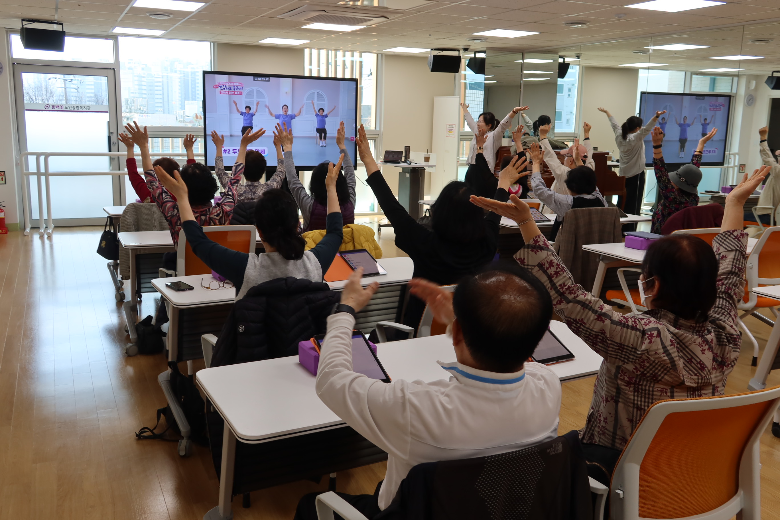 치매예방을 위한 프로그램으로 태블릿을 협조 받아 인지 교육에 필요한 활동을 진행하고, 중간에 신체 활동 증진을 위해 운동 교육도 함께 진행되었습니다. 참여 어르신들께서는 "간만에 머리를 쓰려니 쉽지 않았지만, 자꾸 반복하니 조금씩 나아지고 있다.", "치매가 제일 무서운 것이기에 꼭 예방을 할 필요가 있고, 계속 생각하고 움직이려 노력해야 한다."고 참여 소감을 공유해 주셨습니다. 건강증진사업은 치매 예방에 도움이 될 수 있도록 어르신들의 건강한 노후를 위해 힘쓰는 동백꽃노인종합복지관이 되겠습니다. |
