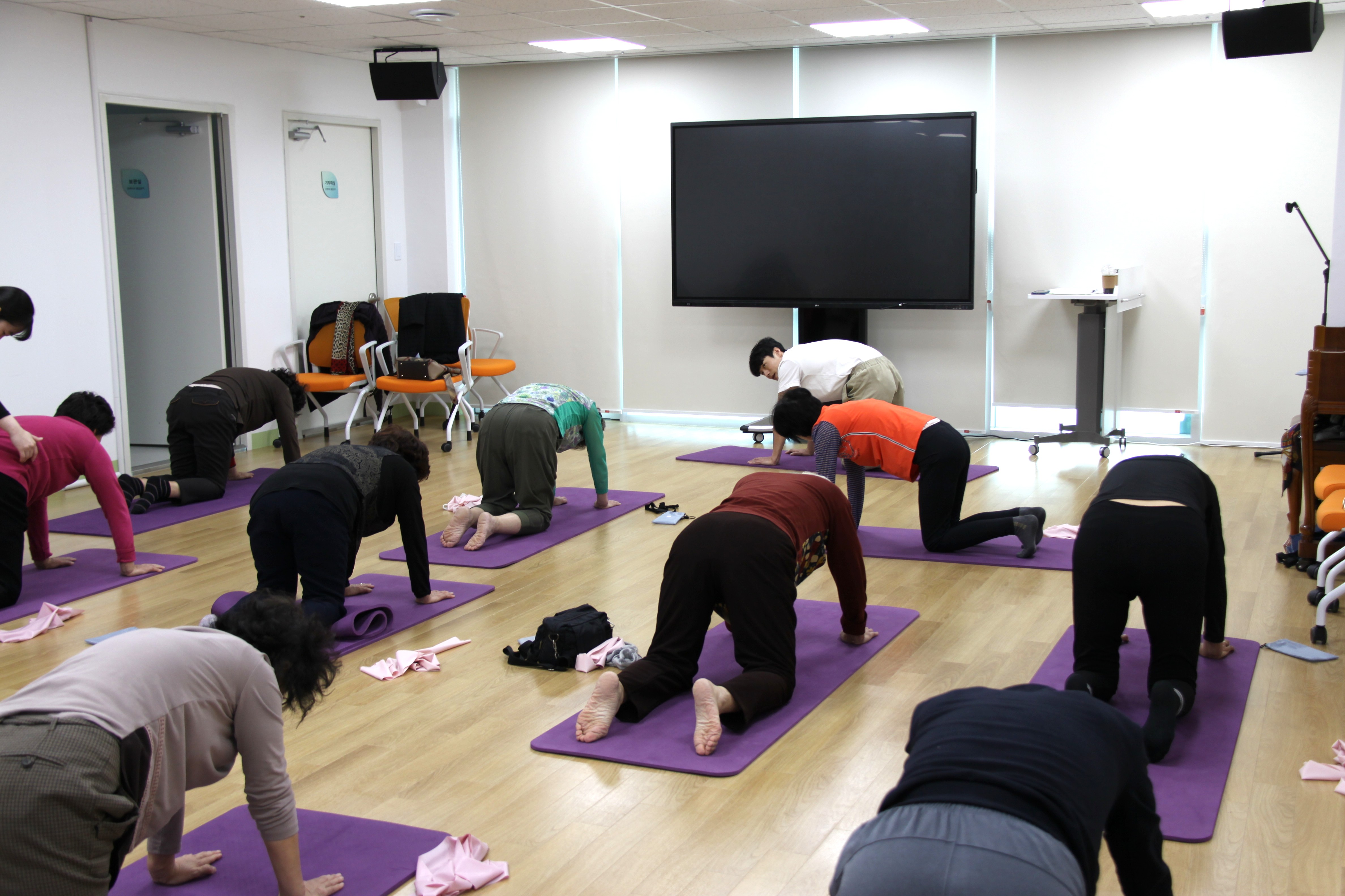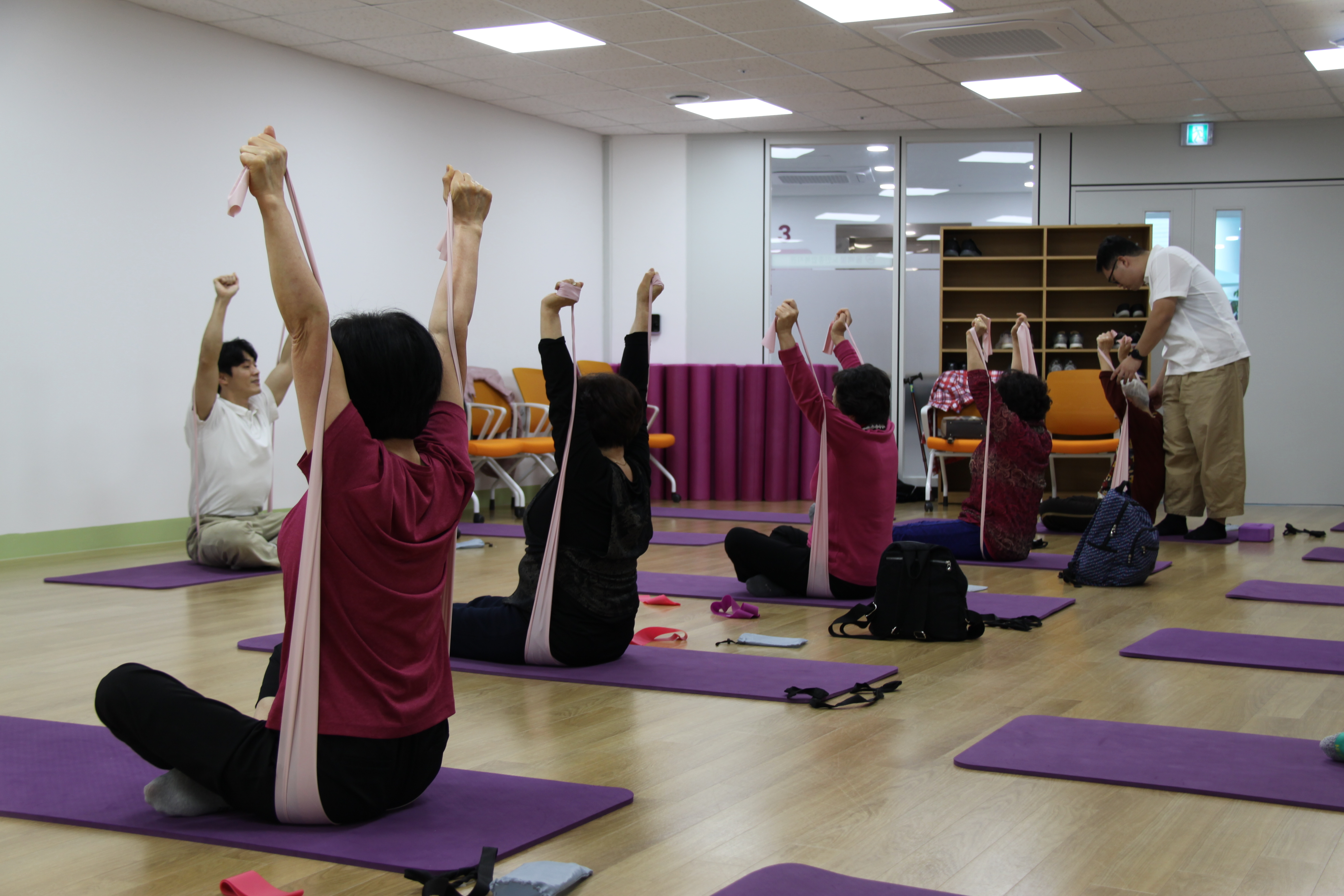 지난 10월 27일(월)~11월 10일(월)까지 바른자세 운동프로그램 참여를 위한 사전 평가 진행을 통해 참여자 선정 후, 11월 13일(목)부터 3층 동백학당 2에서 바른자세 운동프로그램이 진행되었습니다. 프로그램은 연세대학교 스포츠재활연구소(피지오)에서 진행 강사님을 파견하여 프로그램을 실시했습니다.