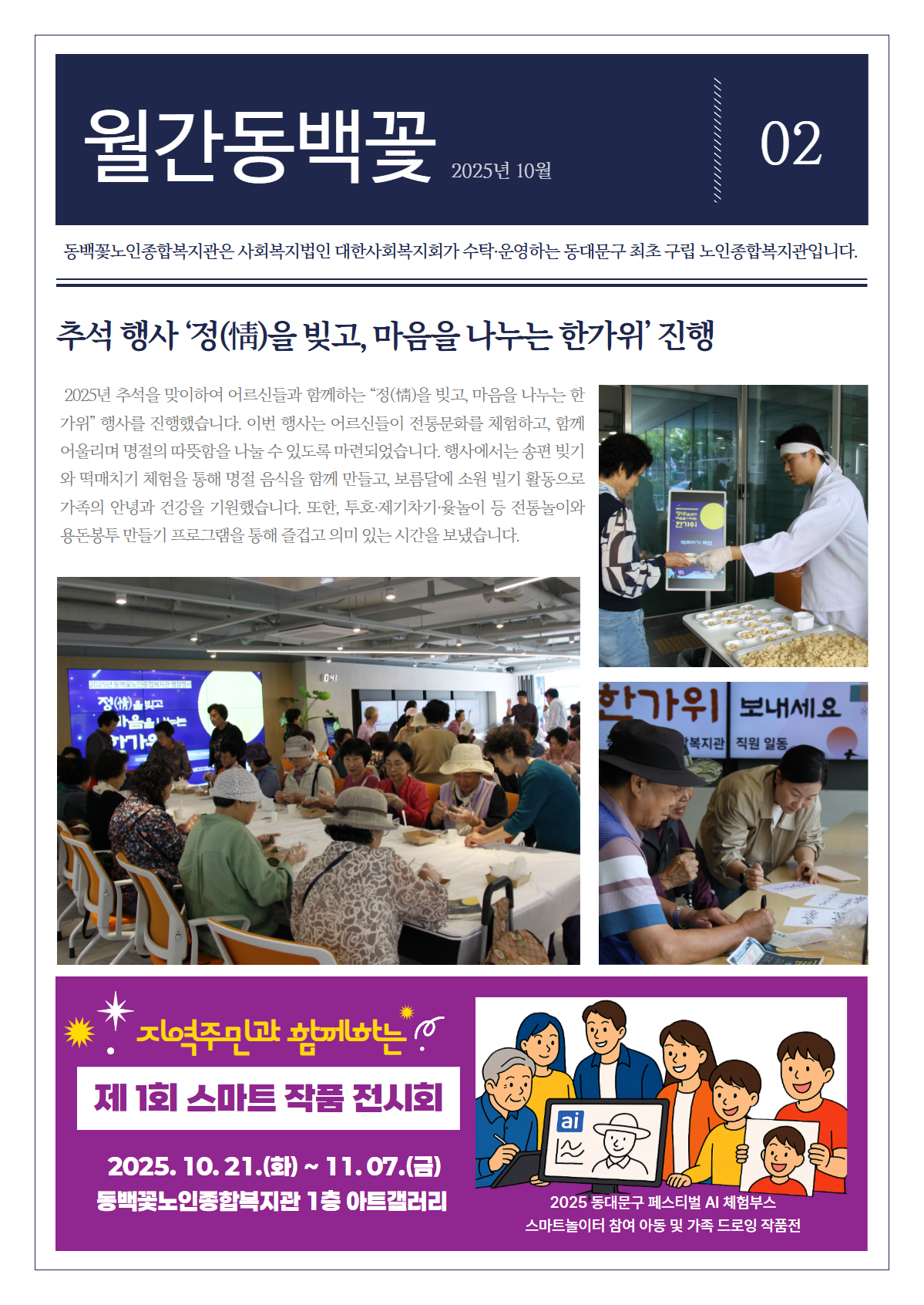 동백꽃노인종합복지관 ‘정(情)을 빚고, 마음을 나누는 한가위’ 추석행사 진행